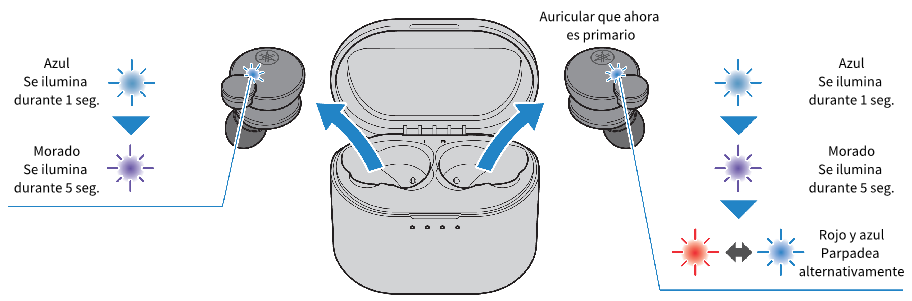 - Los indicadores pueden parpadear en azul durante un rato después de retirar los auriculares del estuche de carga.
