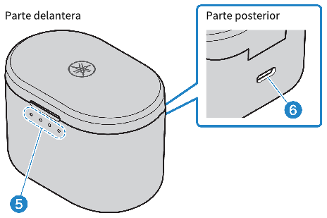 - El estuche de carga contiene una batería para cargar los auriculares.