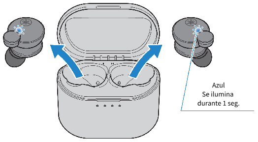 - Coloque los auriculares (L) y (R) en el estuche de carga.