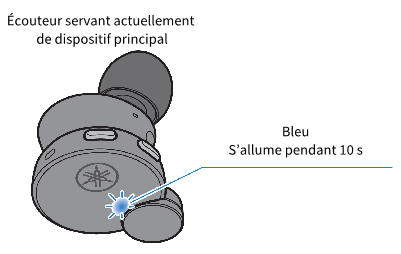 - Une fois l'appairage exécuté, le témoin de l'écouteur principal s'allume comme indiqué ci-dessous. Les messages « Pairing Successful » et « Connected » sont audibles dans les écouteurs.