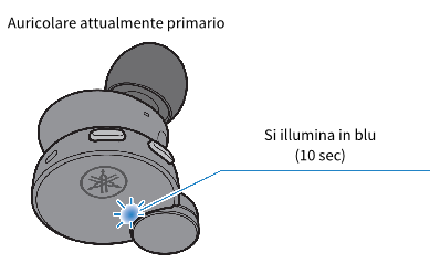 - Con gli auricolari (L) e (R) accesi, tenere premuti il tasto funzione sull'auricolare (L) e il tasto + (più) sull'auricolare (R) per circa tre secondi, quindi rilasciare.