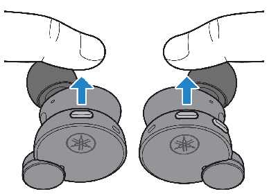 - Als de oortelefoons (L) en (R) niet automatisch verbinding maken, plaats ze dan terug in de oplaadhouder en haal ze er opnieuw uit.