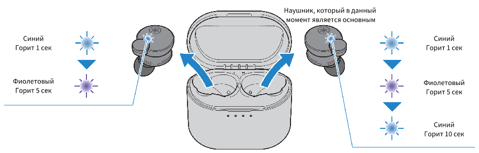 - Один из наушников (L или R) будет основным при подключении в соответствии с оставшимся зарядом аккумулятора.