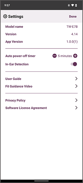 Detta förklarar inställningarna och objekten som du kan kontrollera med appen Headphone Control .
