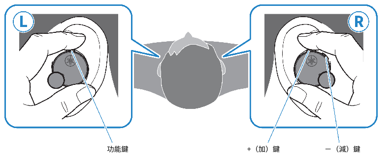 - 取下任一耳機 (L) 或 (R) 時,內建感測器會啟動,自動暫停音訊播放。 戴回耳機後,音訊會自動重新開始。