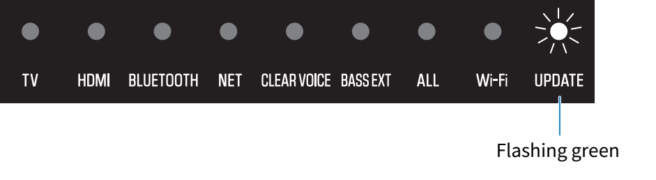 When a new firmware is released, the UPDATE indicator on the sound bar flashes green when the sound bar is turned on. Follow the Sound Bar Controller app screen instructions to update the firmware.