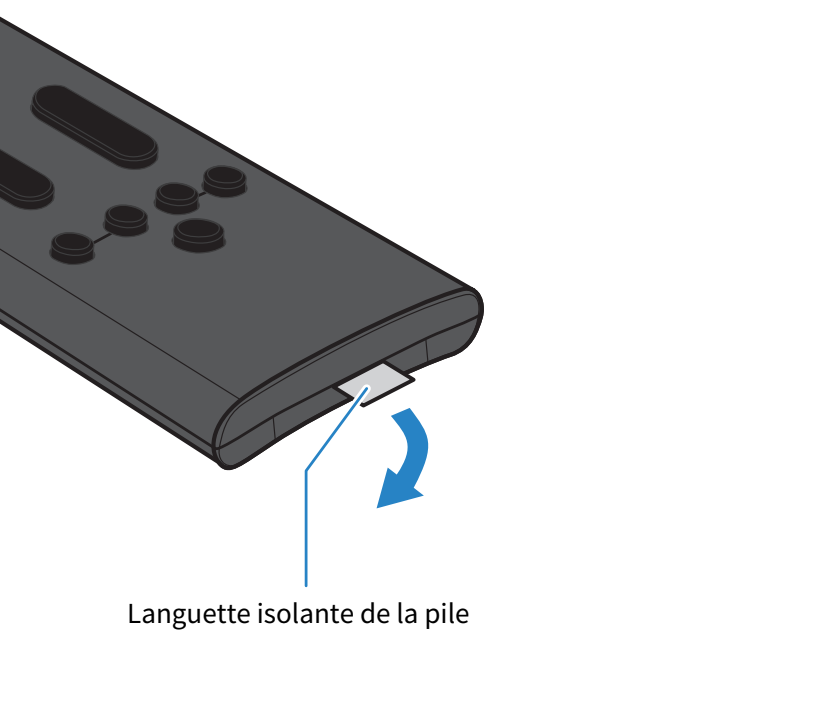 Retirez la languette isolante de la pile avant d’essayer d’utiliser la télécommande.
