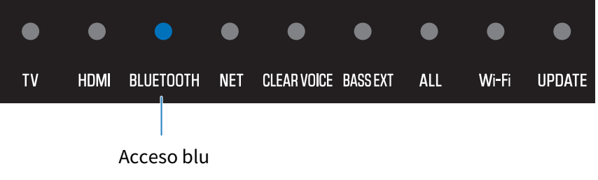 - Una volta stabilita la connessione, l’indicatore BLUETOOTH della soundbar smette di lampeggiare e rimane acceso il blu.