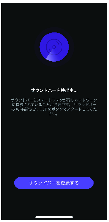 - スマートフォンにSound Bar Controllerアプリをインストールし、アプリ を開く。