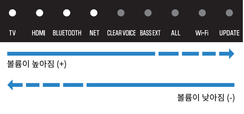 켜진 표시등의 숫자가 바뀌면서 볼륨 레벨을 표시합니다.