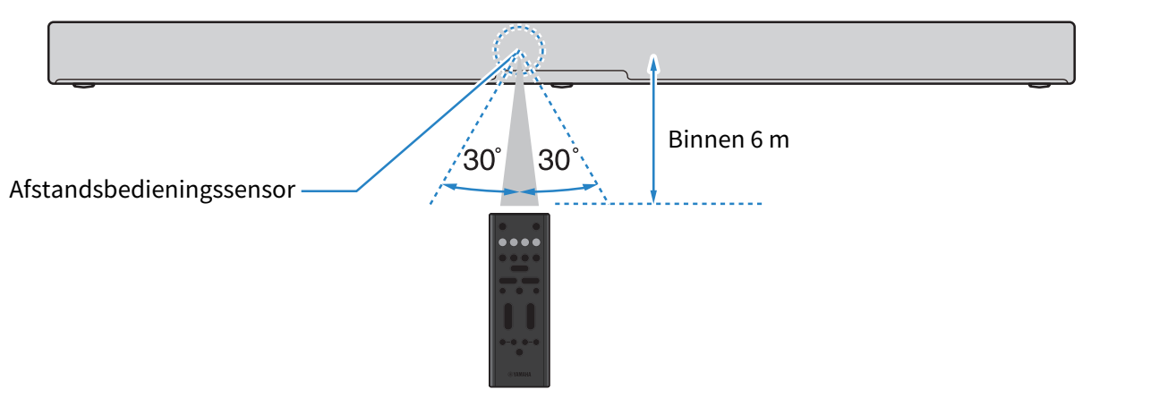 - Gebruik de afstandsbediening binnen het bereik dat staat aangegeven op de volgende afbeelding: