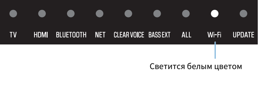 При подключении к беспроводной сети на саундбаре загорится индикатор Wi-Fi.