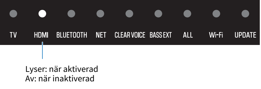- Indikatorerna visar inställningsstatus enligt följande och soundbaren slås på.