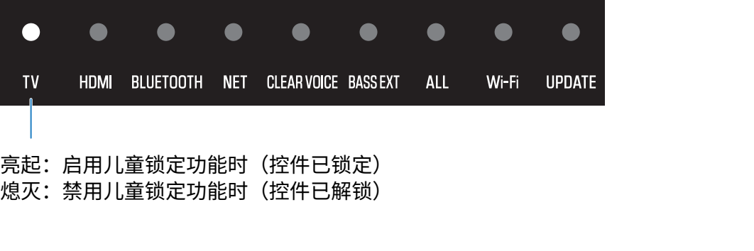 为防止意外操作,可启用儿童锁定功能以锁定条形音箱的控件。即使已启用儿童锁定功能,也可以操作