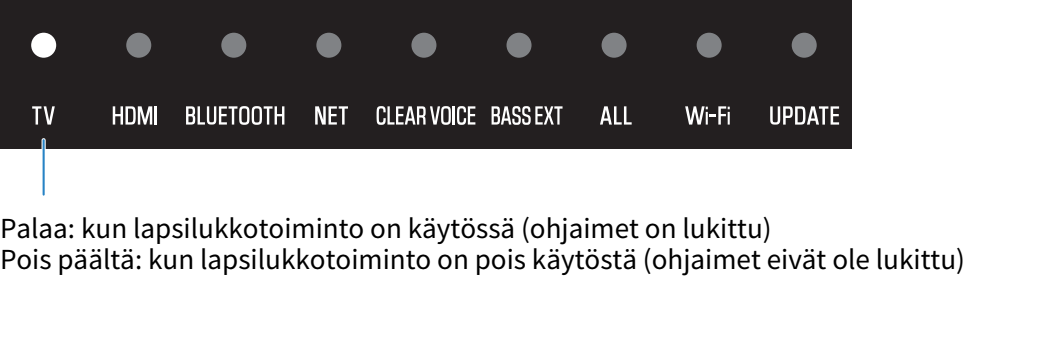 Lapsilukon käyttöönotto lukitsee äänipalkin ohjaimet vahingossa tapahtuvan käytön estämiseksi. Vaikka lapsilukkotoiminto on käytössä, )(mikrofonit päällä/pois päältä) voidaan käyttää.