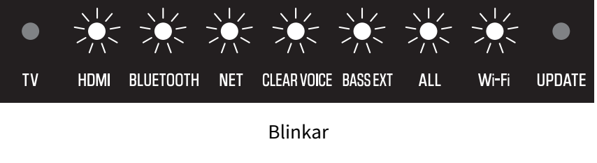 Indikatorn på soundbarens framsida visar den valda ingångskällan på följande sätt: