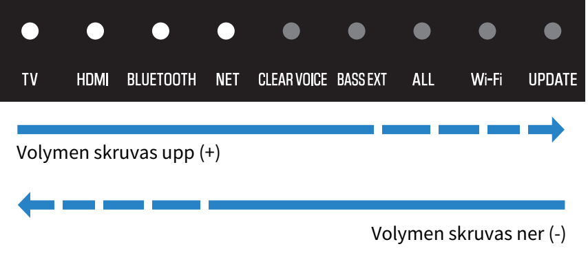 Antal lysande indikatorer ändras för att visa volymnivån.