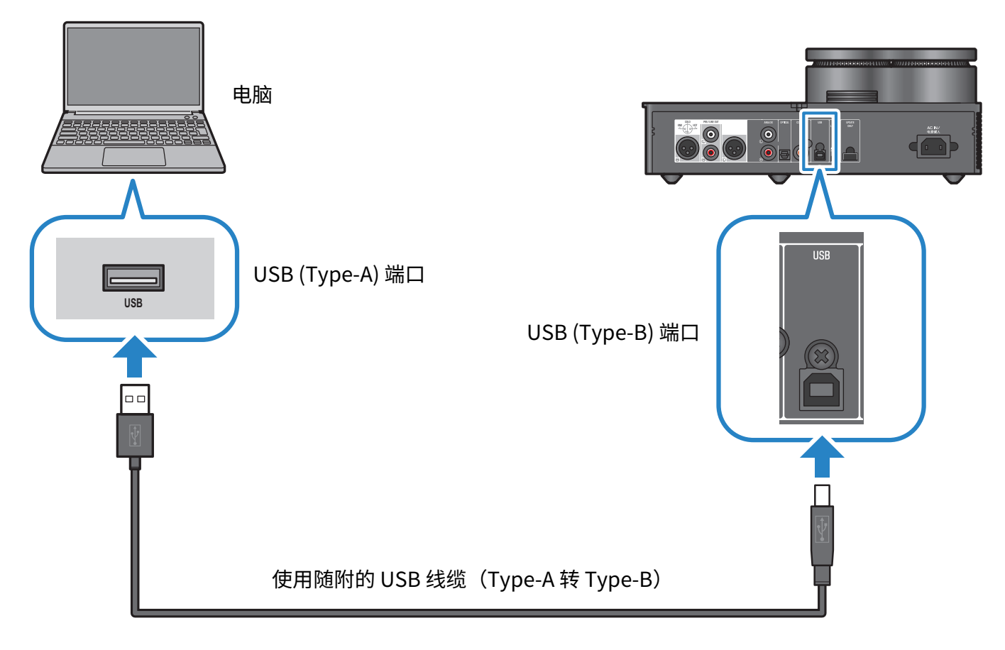 使用随附的 USB 线缆(Type-A 转 Type-B)。如果您使用的是市面上购买的 USB 线缆,请确保其长度不超过 3 m。