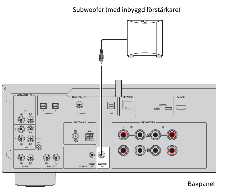 Om du vill använda en subwoofer ansluter du den till produkten med en mono stiftkabel (RCA) (finns i handeln).