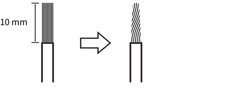 - 剥去喇叭线端部约 10 mm 的绝缘皮,并将其线芯紧捻在一起。