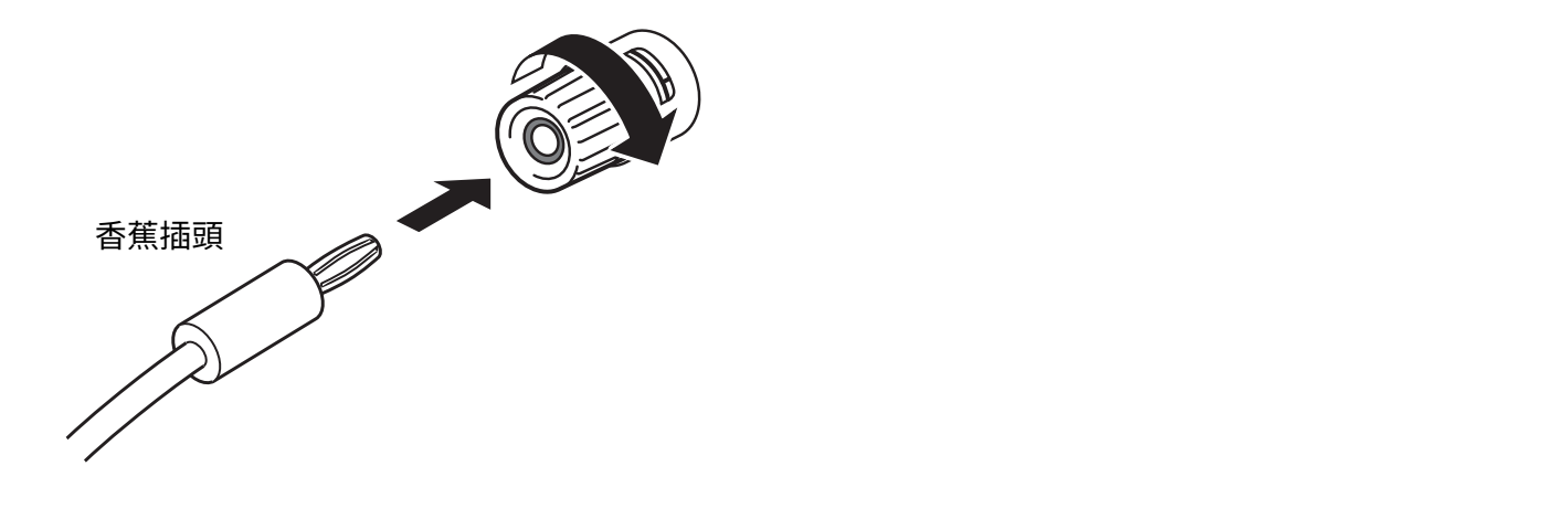 使用香蕉插頭時,旋緊揚聲器端子的旋鈕,並將香蕉插頭插入端子末端。