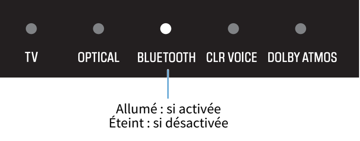 - Le témoin indique le statut du réglage pendant quelques secondes comme suit, et la barre de son s’allume.