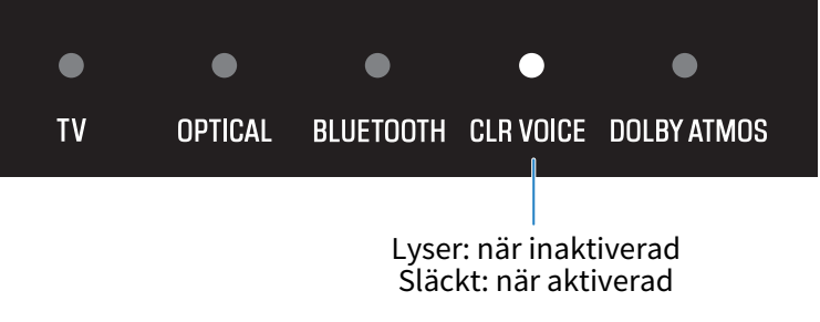 - Indikatorn visar inställningsstatus under några sekunder enligt följande och soundbaren slås på.