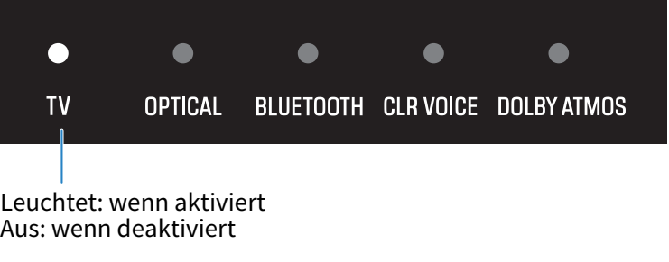 - Die Anzeige informiert wie nachstehend einige Sekunden lang über den Einstellungsstatus, und die Soundbar schaltet sich ein.