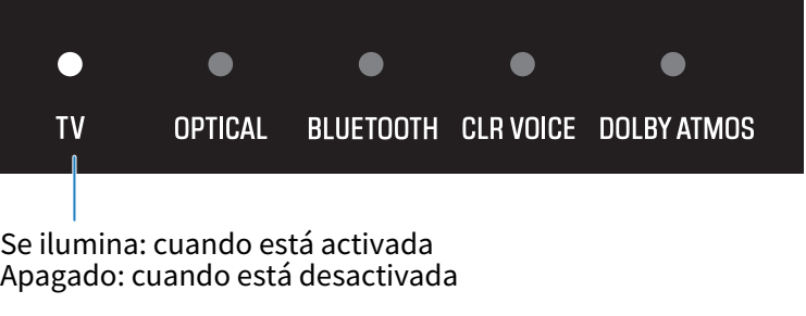 - El indicador muestra durante unos segundos el estado de ajuste de la siguiente forma, y la barra de sonido se enciende.