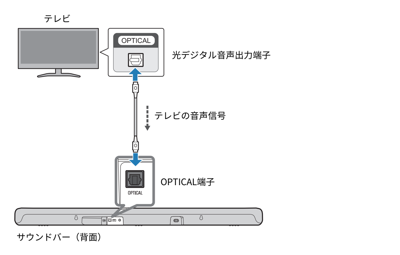 - テレビの光デジタル音声出力端子に接続してください。