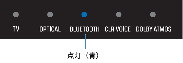 - 接続が完了すると、サウンドバーのBLUETOOTHランプが点滅から点灯(青)に変わります。