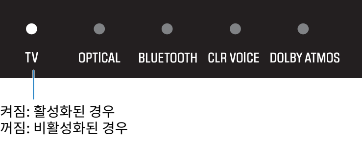 - 표시등은 설정 상태를 몇 초 동안 다음과 같이 표시하며, 사운드 바가 켜집니다.