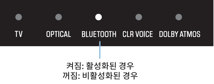 - 표시등은 설정 상태를 몇 초 동안 다음과 같이 표시하며, 사운드 바가 켜집니다.