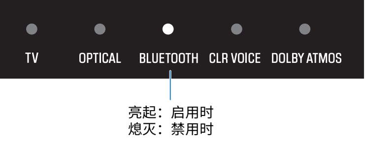 指示灯如下显示设置状态数秒钟,且条形音箱已打开。