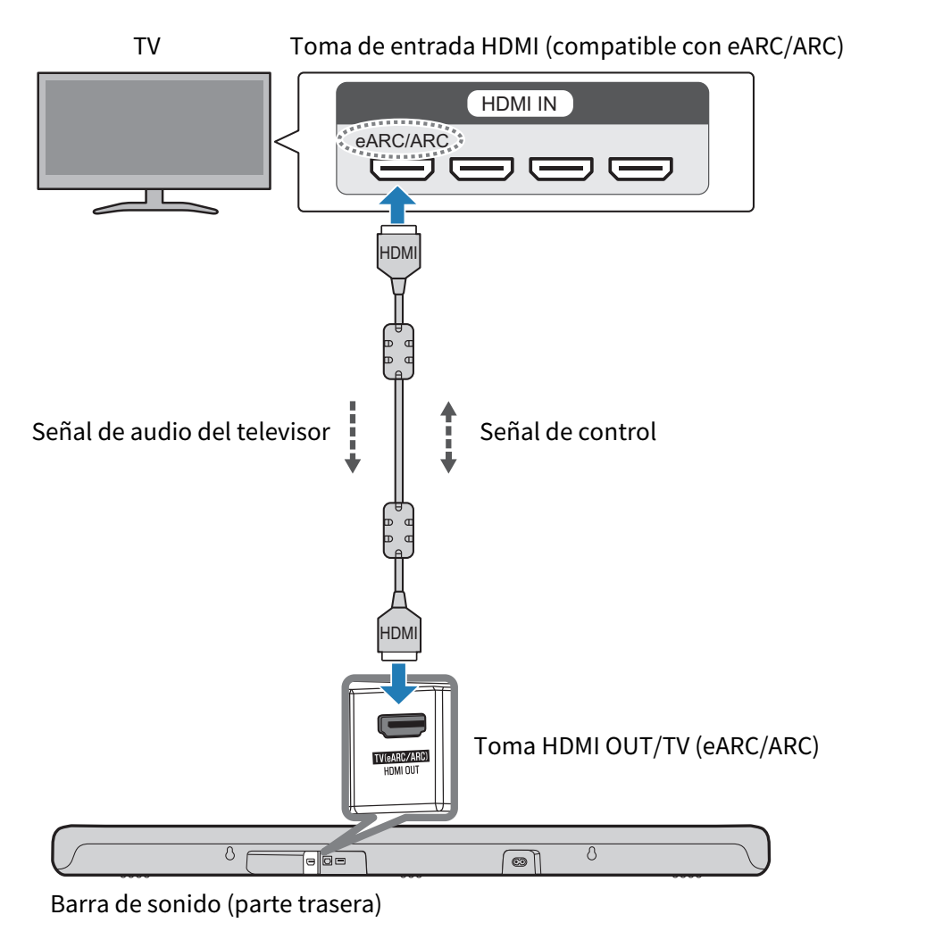 El cable HDMI envía la señal de audio del televisor y la señal de control para controlar la barra de sonido con el mando a distancia del televisor.