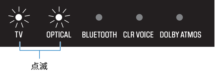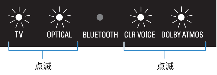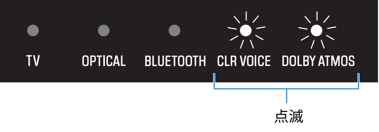 ボタンを押すたびに、再生する音声が次の順で切り替わります。設定に応じて、サウンドバーのランプが次のように点滅します。