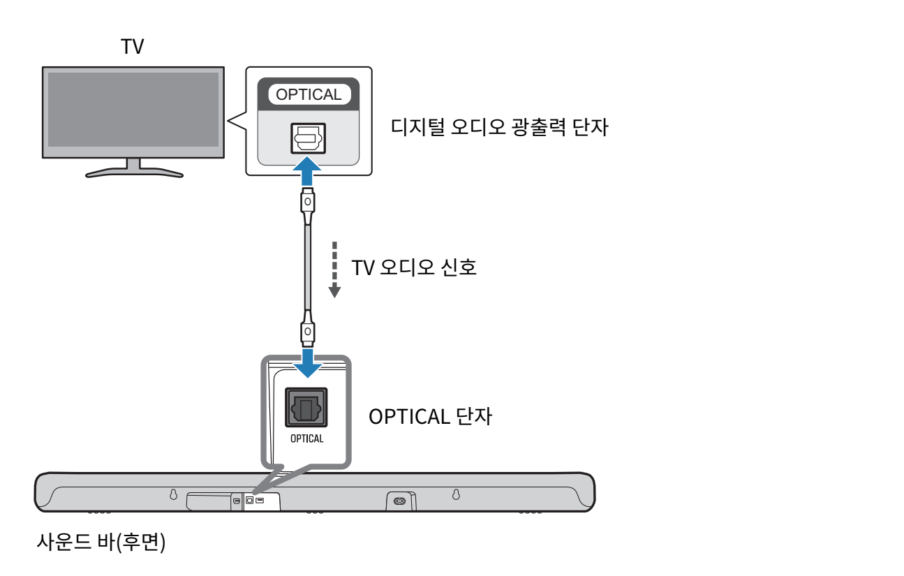 디지털 오디오 광케이블은 TV의 오디오 신호를 사운드 바로 전송합니다.