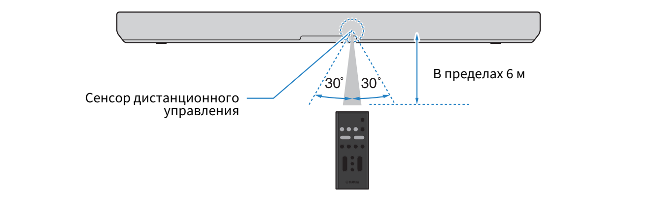 Используйте пульт ДУ в пределах диапазона, показанного на следующем рисунке: