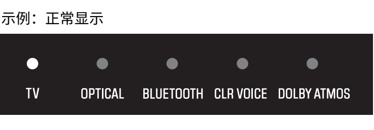 打开条形音箱时,所有指示灯均会亮起,然后,某些指示灯仍然亮起以显示设置状态。