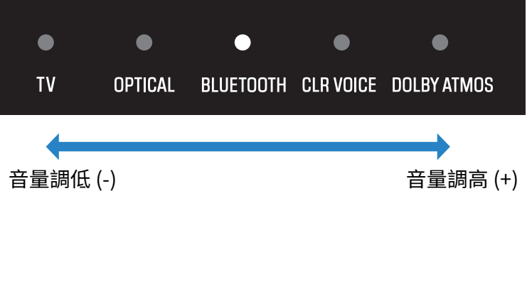 亮起的指示燈變化以顯示音量電平。