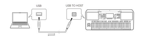 وصِّل منفذ USB (النوع A أو C) الخاص بالكمبيوتر بالمنفذ [USB TO HOST] (النوع B) في الآلة الموسيقية عبر كابل USB.
