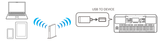 • برای استفاده از اتصال بیسیم LAN با ساز، ممکن است به آداپتور بیسیم LAN UD-WL01 (که جداگانه فروخته میشود) نیاز داشته باشید. برای جزئیات بیشتر، لطفاً به دفترچه راهنمای مالک ساز خاص خود مراجعه کنید.