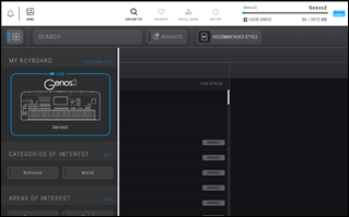 • MY KEYBOARD (کیبورد من): برای بررسی وضعیت اتصال به ساز و باز کردن صفحه KEYBOARD LIST (لیست کیبوردها) • CATEGORIES OF INTEREST (دستهبندیهای مورد علاقه): برای فیلتر کردن محتوا بر اساس دستهبندی انتخاب شده • AREAS OF INTEREST (زمینههای مورد علاقه): برای فیلتر کردن محتوا بر اساس زمینه انتخاب شده |