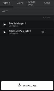 - FAVORITES (علاقهمندیها): قبلاً به FAVORITES (علاقهمندیها) اضافه شده است - INSTALLED (نصبشده): قبلاً روی ساز نصب شده است