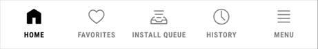 HOME (ANA SAYFA) / FAVORITES (FAVORİLER) / INSTALL QUEUE (YÜKLEME SIRASI) / HISTORY (GEÇMİŞ) / MENU (MENÜ) |