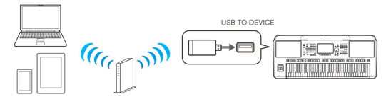 • Bạn có thể cần Bộ chuyển đổi mạng LAN không dây UD-WL01 (bán riêng) để sử dụng kết nối Mạng LAN không dây với nhạc cụ. Để biết thêm chi tiết, vui lòng tham khảo hướng dẫn sử dụng của nhạc cụ cụ thể của bạn.