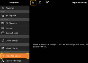 2-3 Nella schermata Song Select selezionare [Import Songs], quindi toccare