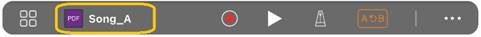 Tempo: Możesz zmienić tempo. W przypadku zmiany tempa odtwarzania utworu z zaimportowanego zapisu nutowego w formacie PDF możesz zapisać zmienione tempo, dotykając ikony
