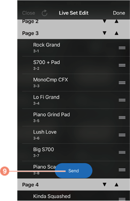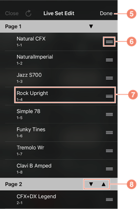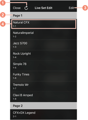 i) ライブセットを変更した場合に表示されます。タップすると、楽器本体のライブセットを変更します。