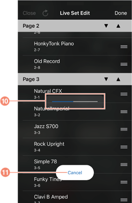 g) Editモード中にタップするとリネームダイアログが表示され、ライブセットサウンドの名称を変更できます。